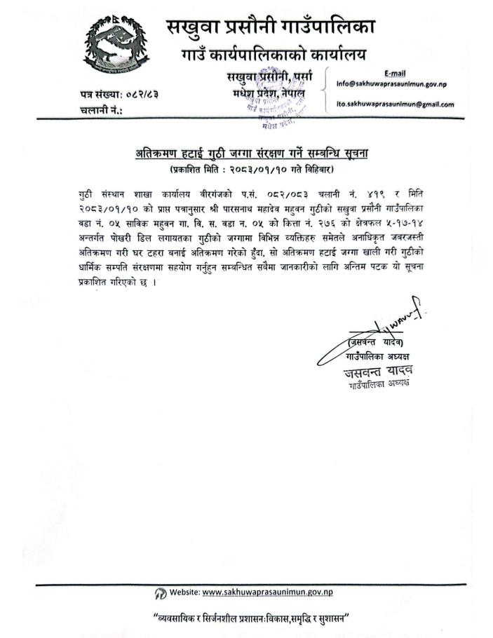 » अतिक्रमण हटाई गुठी जग्गा संरक्षण गर्ने सम्बन्धि सूचना ।