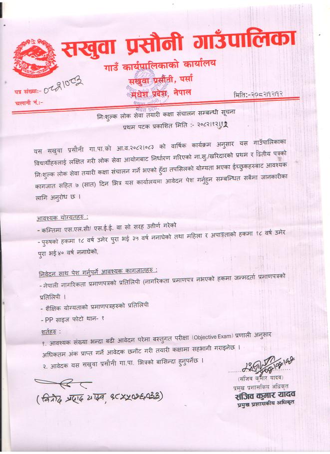 निःशुल्क लोक सेवा तयारी कक्षा संचालन सम्बन्धी सूचना ।