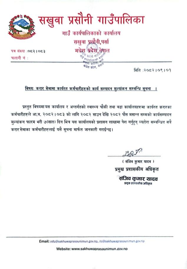 करार सेवामा कार्यरत कर्मचारीहरुको कार्य सम्पादन मूल्याङ्कन सम्बन्धी सूचना।