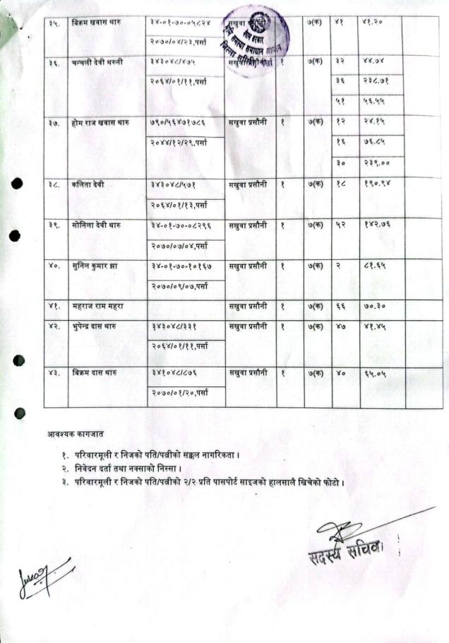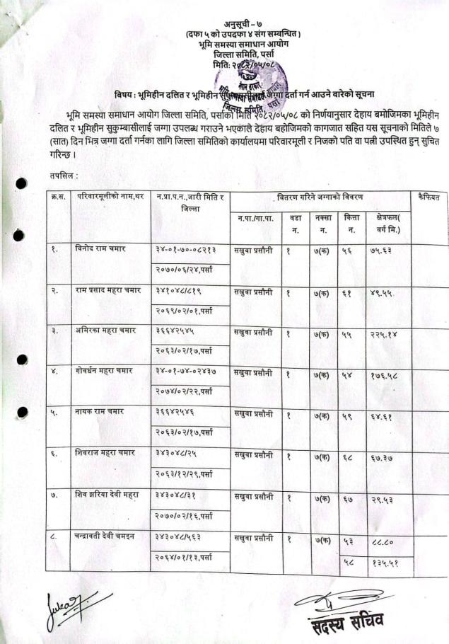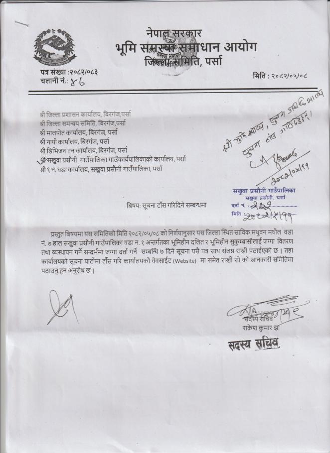 सखुवा प्रसौनी गा.पा.वडा नं.१ अन्तर्गतका भूमिहीन दलित, भूमिहीन सुकुम्बासीलाई जग्गा वितरण तथा व्यवस्थापन गर्ने सन्दर्भमा जग्गा दर्ता गर्ने सम्बन्धी सूचना।