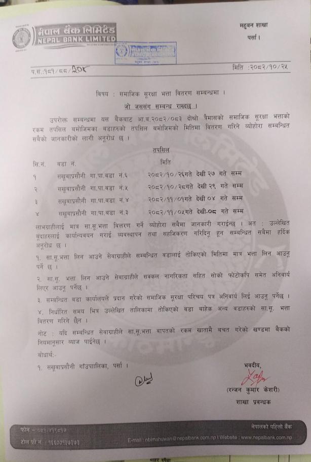 सामाजिक सुरक्षा भत्ता वितरण सम्बन्धी सूचना ।