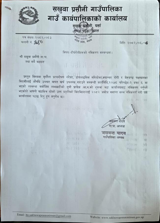 about दिर्घरोगीहरुको नविकरण सम्बन्धी सूचना।