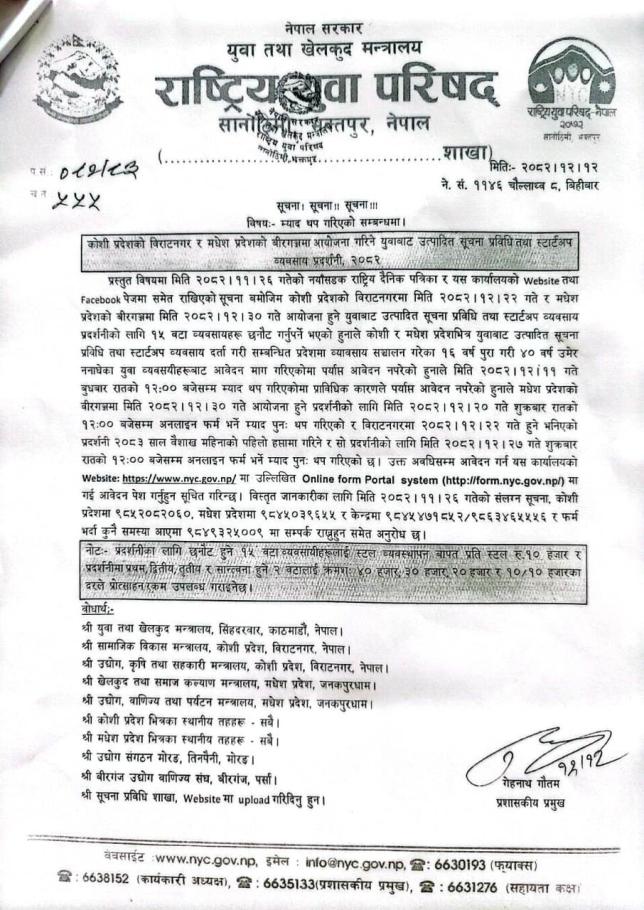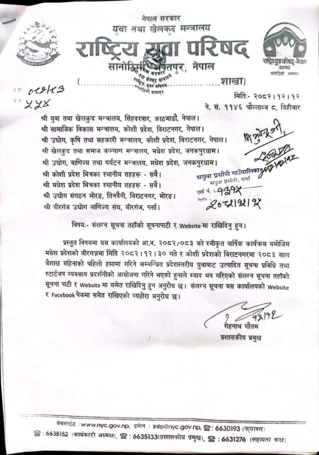 about राष्ट्रिय युवा परिषदको सूचना ।